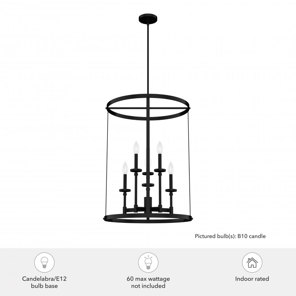 Hunter Briargrove Matte Black 6 Light Large Chandelier Ceiling Light Fixture