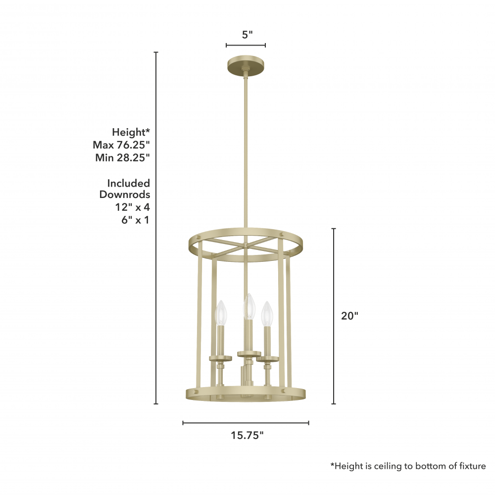 CUSTOMIZABLE HANGING OPTIONS: With the minimum required downrod, the hanging length is 26.75 inches. When using all of the included downrod, the maximum hanging length is 68.75 inches.