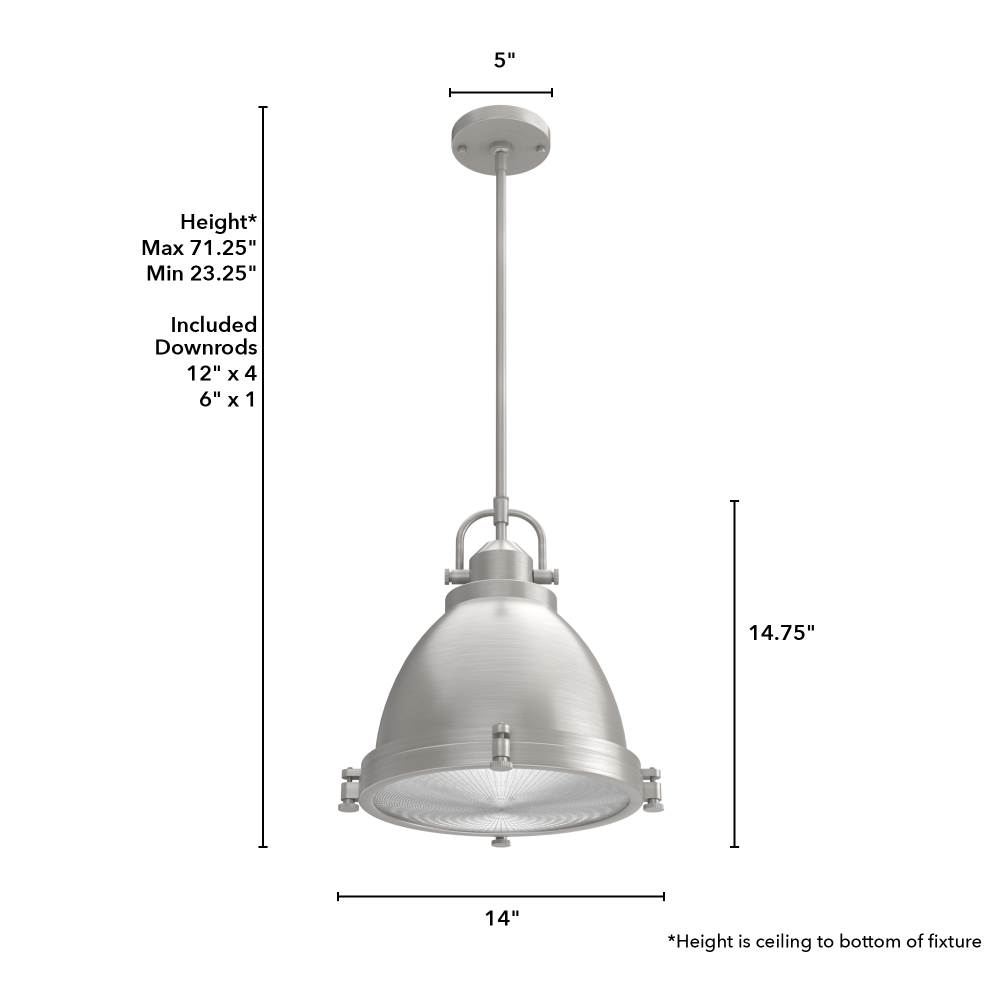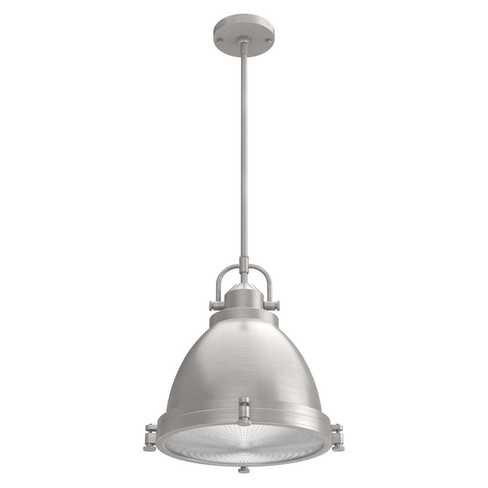 Hunter Bridgemoor Brushed Nickel with Clear Holophane Glass 1 Light Pendant Ceiling Light Fixture