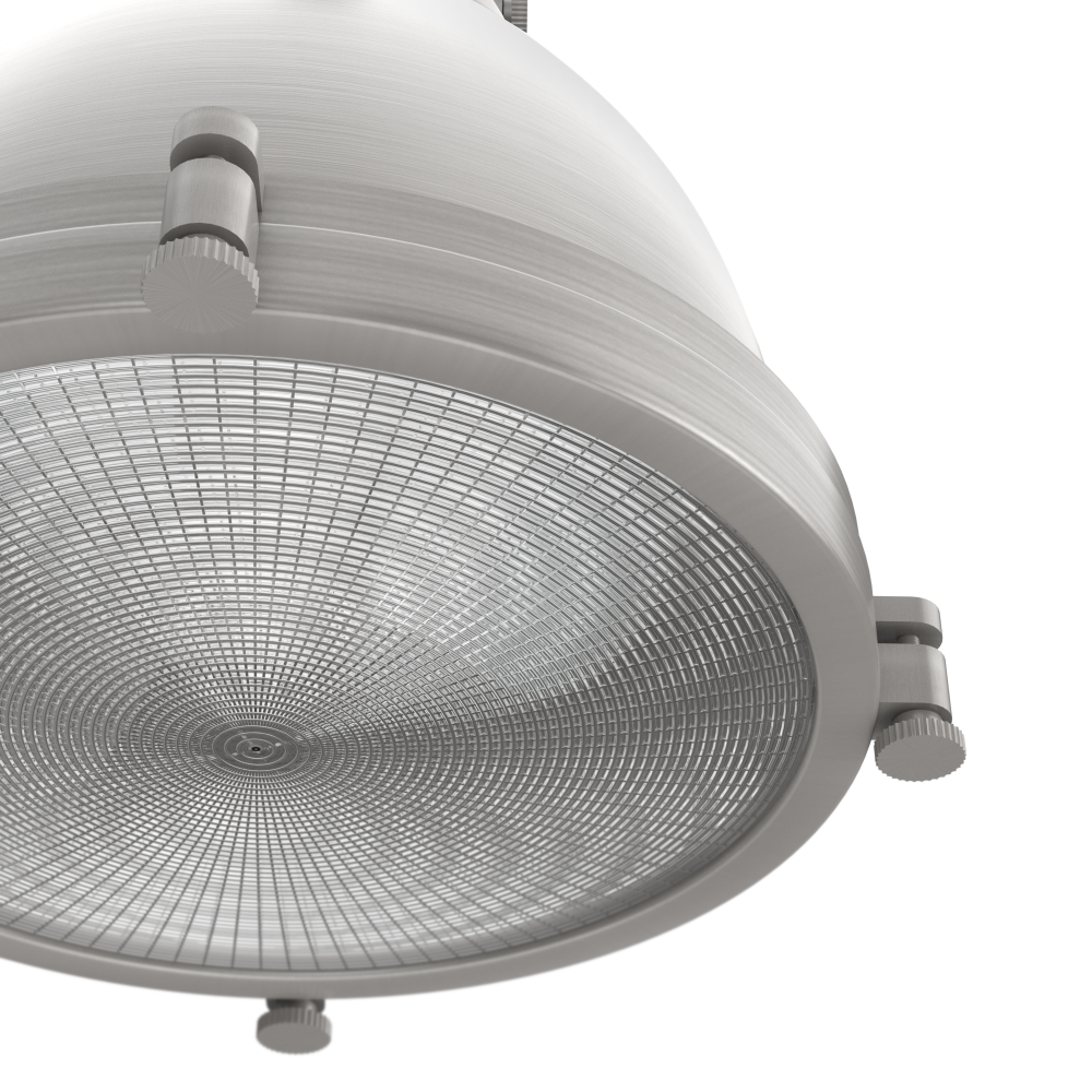 The Bridgemoor is a modern interpretation of classic industrial design. The rustic hardware detailing gives this modern industrial pendant light an authentic and warm aesthetic. It’s perfect for farmhouse style and other casual spaces. Through the clear holophane glass, this pendant provides plenty of opportunity for light output. Mix and match with other fixtures from this collection or from our ceiling fan designs.