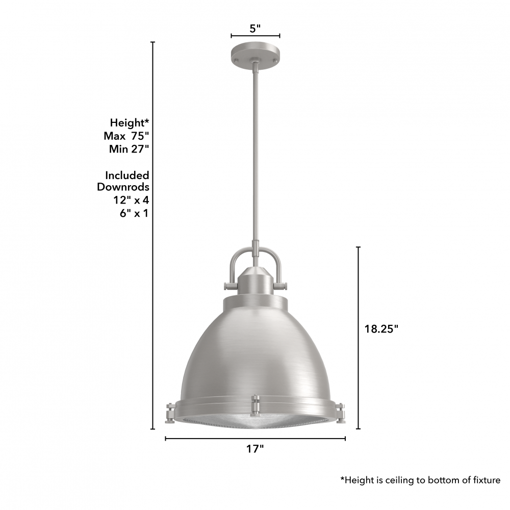 CUSTOMIZABLE HANGING OPTIONS: With the minimum required downrod, the hanging length is 27 inches. When using all of the included downrod, the maximum hanging length is 75 inches.