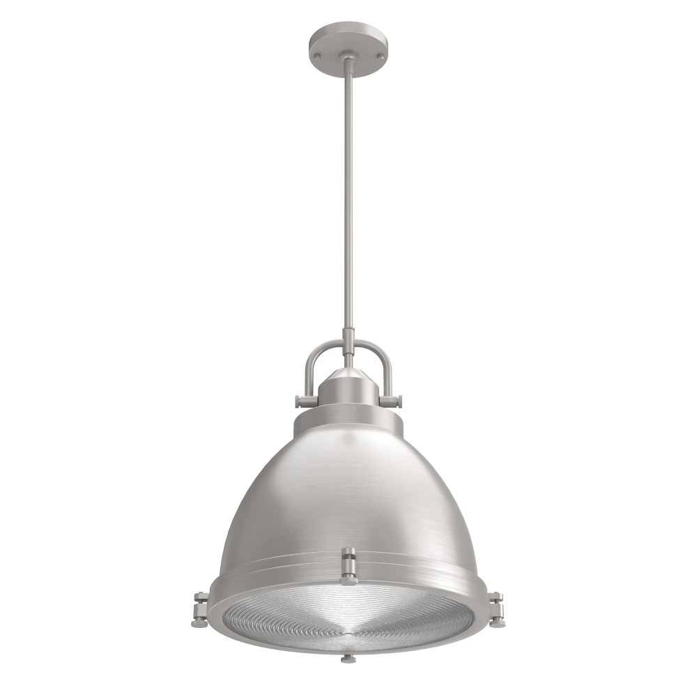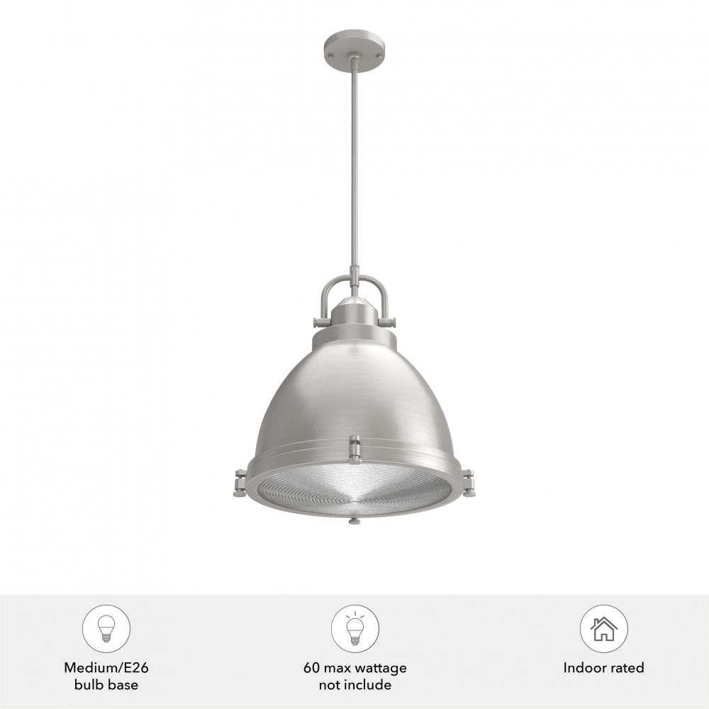 Hunter Bridgemoor Brushed Nickel with Clear Holophane Glass 1 Light Pendant Ceiling Light Fixture