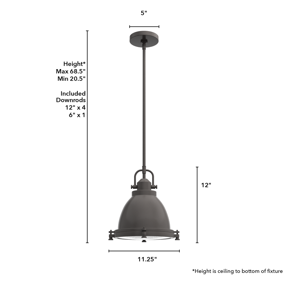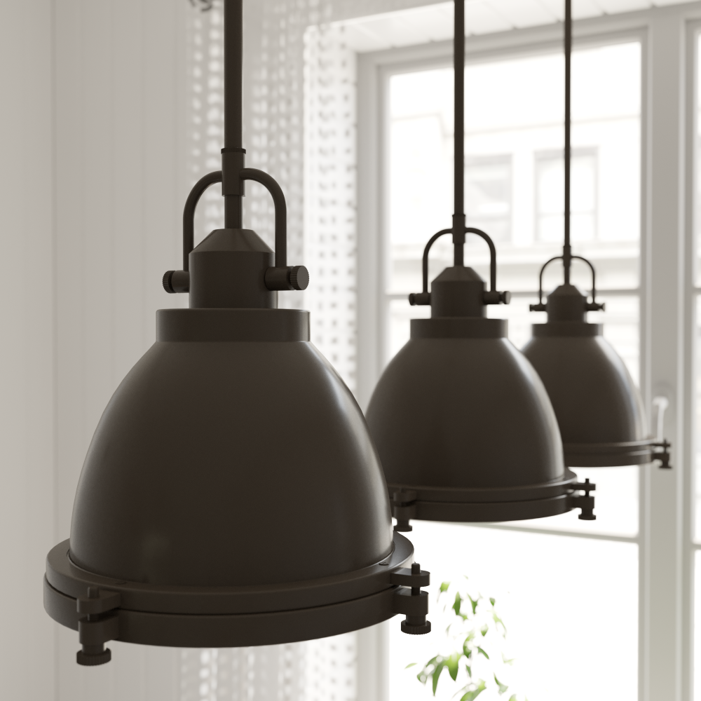 The Bridgemoor pendant light’s authentic design is what your modern industrial and farmhouse-style spaces demand. The rustic hardware detailing gives this modern industrial pendant light a warm aesthetic. The dome shape is accented by clear, holophane glass that creates a stunning effect and ample light output. Mix and match with other fixtures from this collection or from our ceiling fan designs.