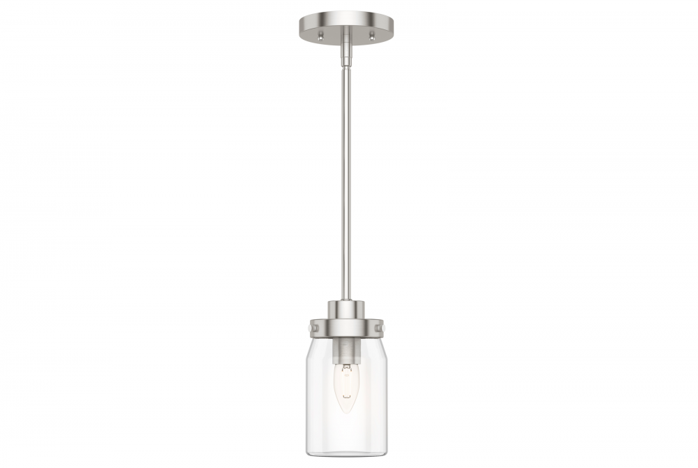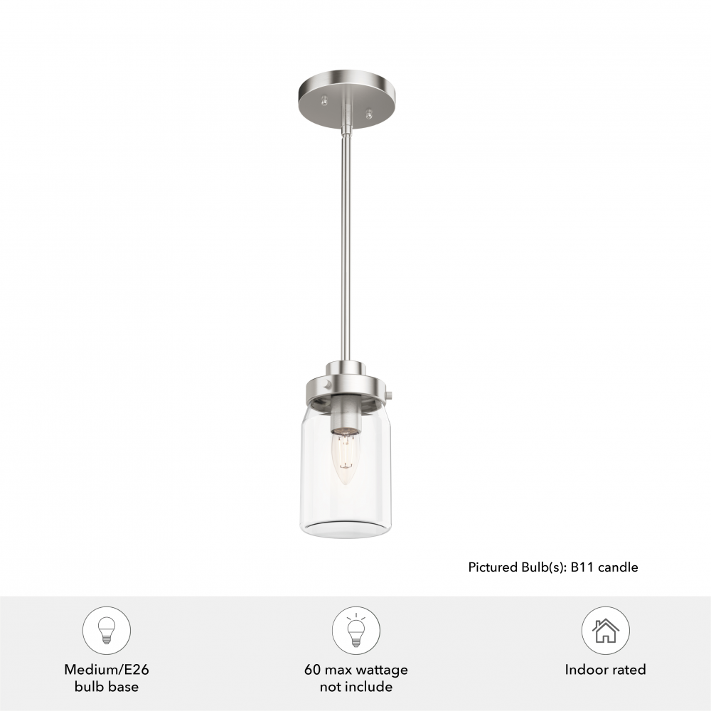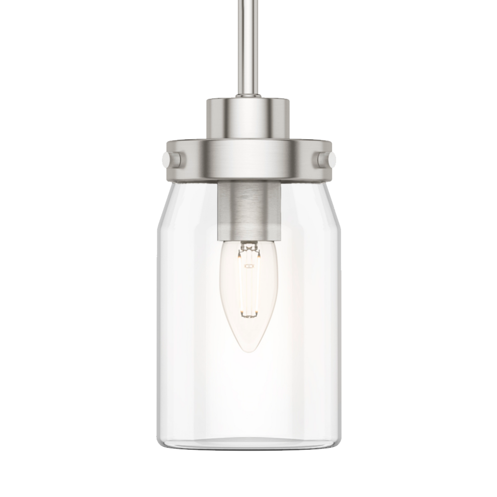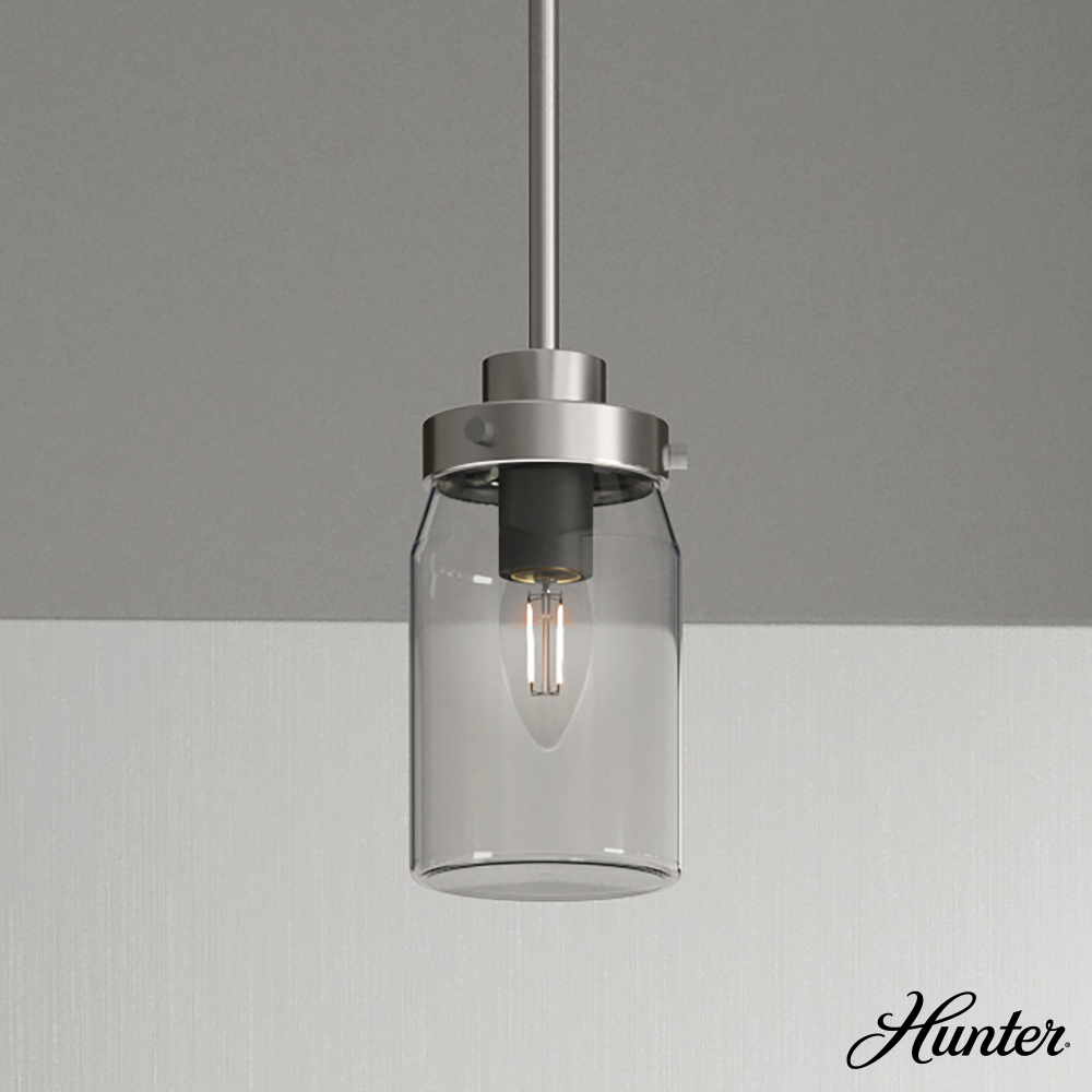 Hunter Devon Park Brushed Nickel with Clear Glass 1 Light Pendant Ceiling Light Fixture