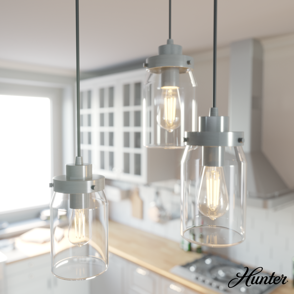 Hunter 19158 - Hunter Devon Park Brushed Nickel with Clear Glass 3 Light Pendant Cluster Ceiling Light Fixture