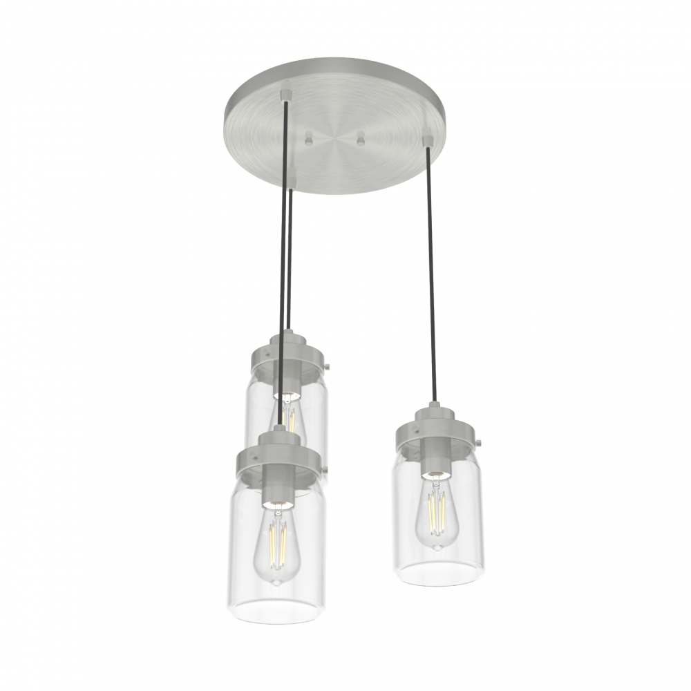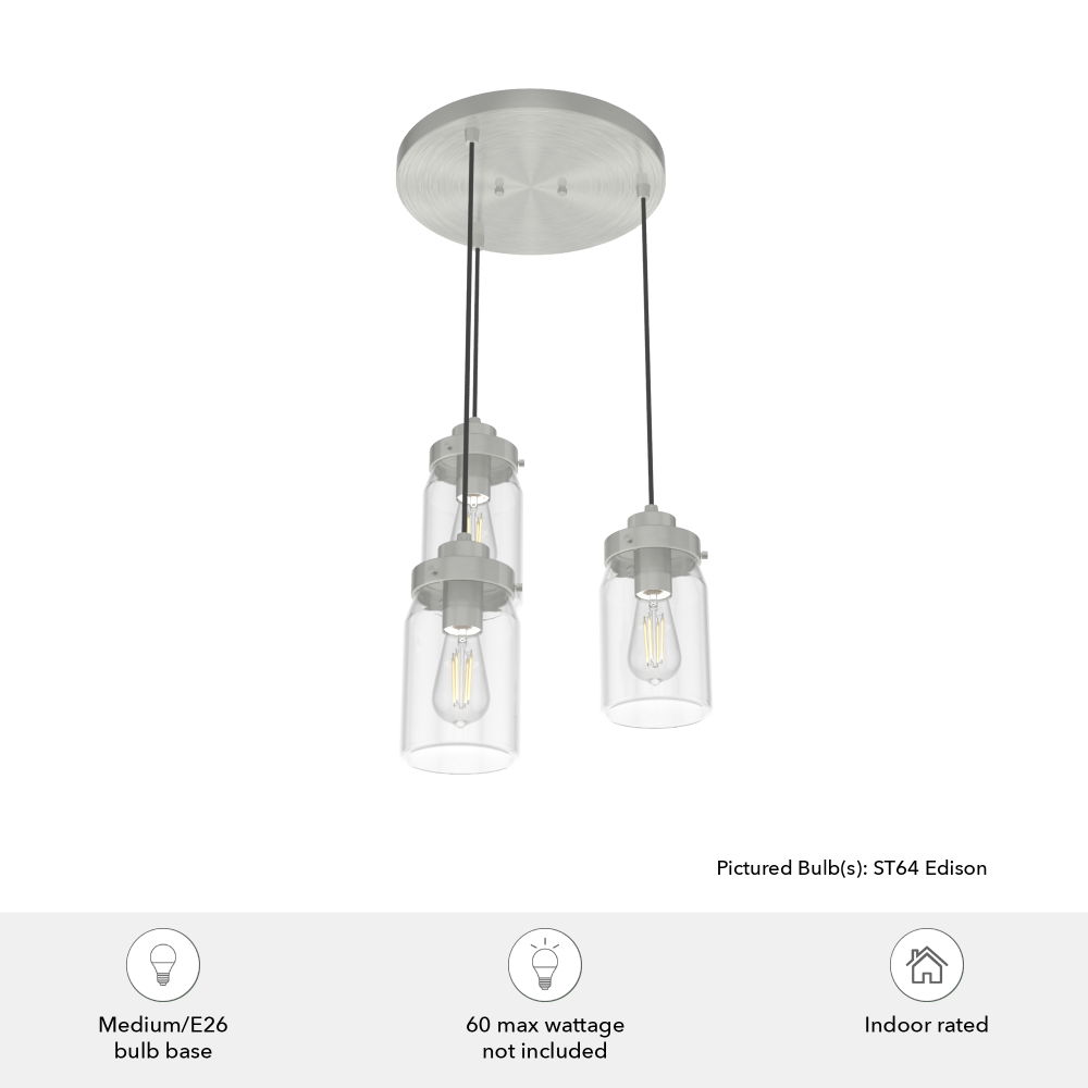 Hunter Devon Park Brushed Nickel with Clear Glass 3 Light Pendant Cluster Ceiling Light Fixture
