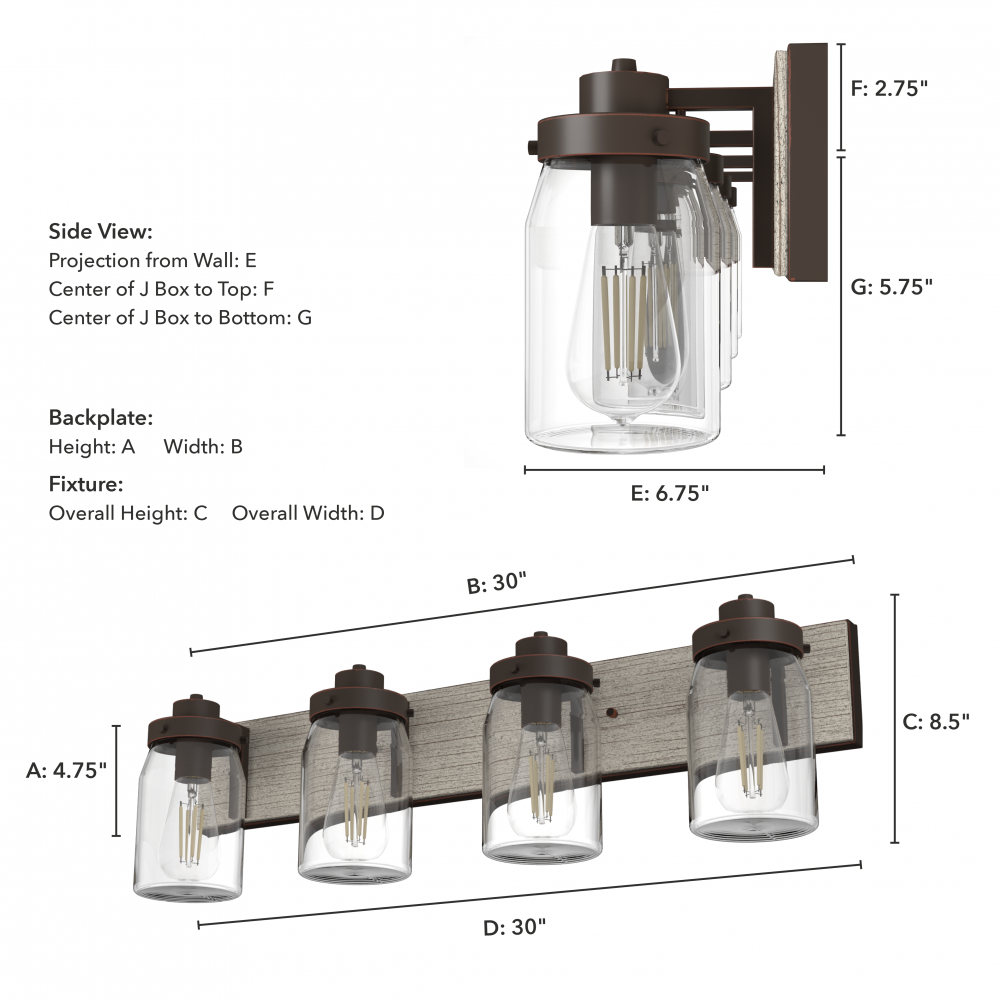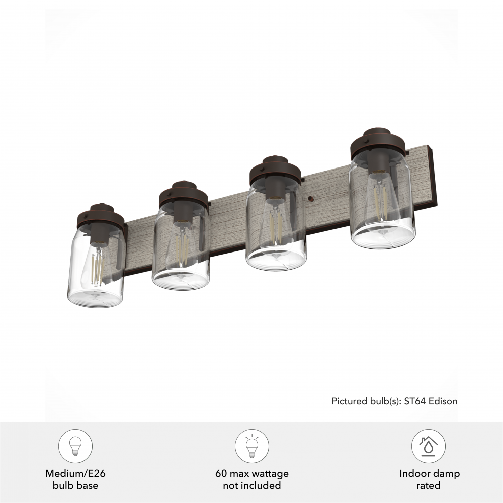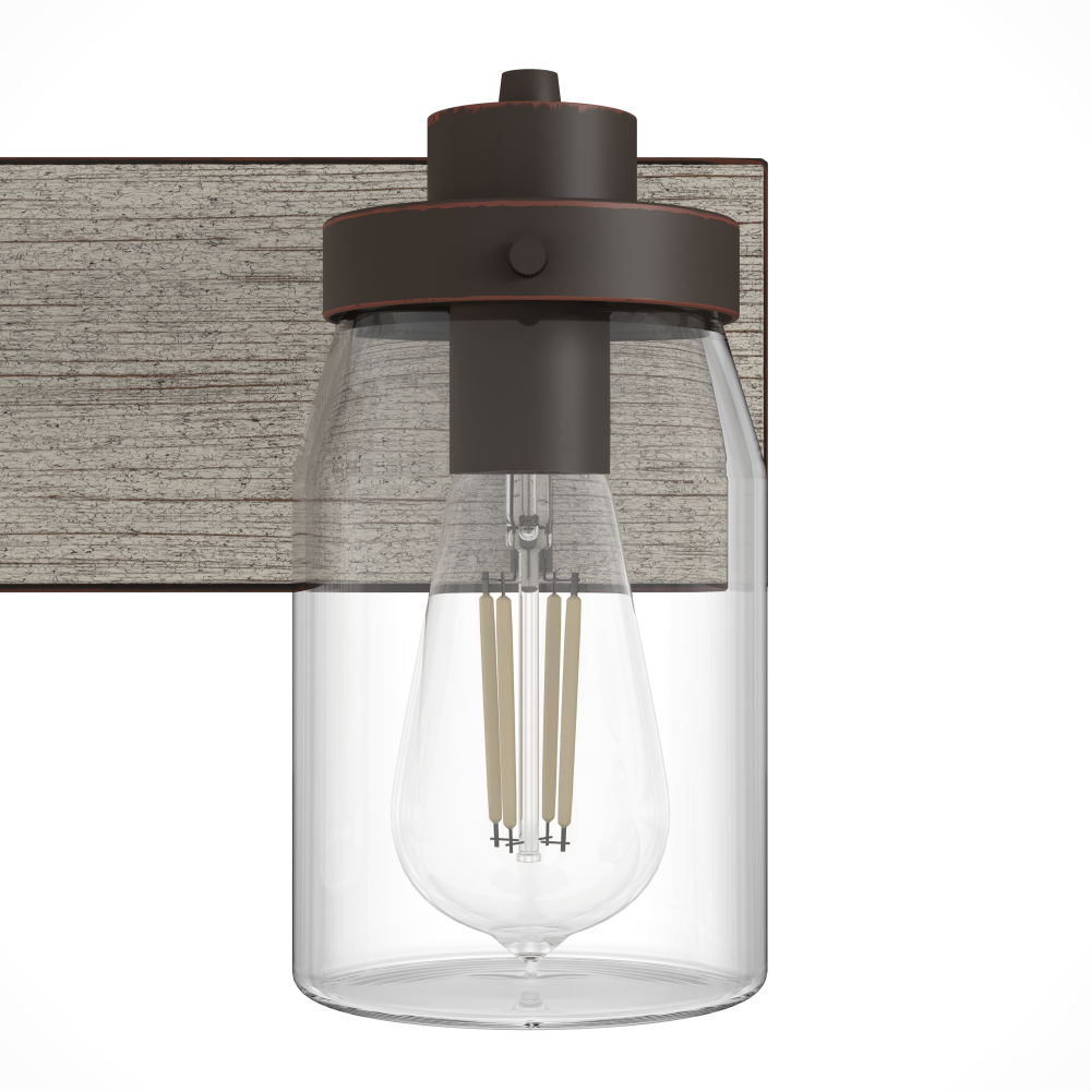 Hunter Devon Park Onyx Bengal and Barnwood with Clear Glass 4 LT Bathroom Vanity Wall LT Fixture