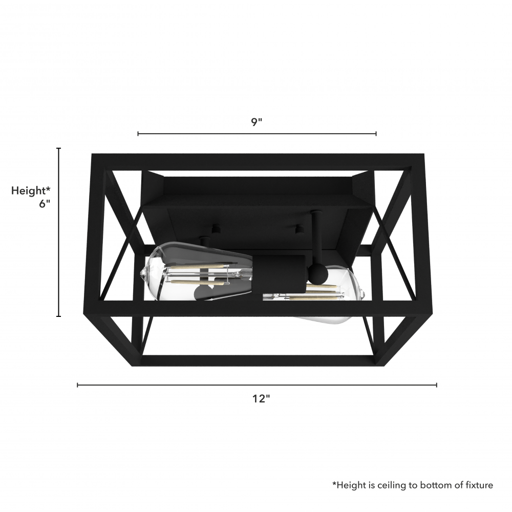 Hunter Doherty Natural Black Iron 2 Light Medium Flush Mount Ceiling Light Fixture