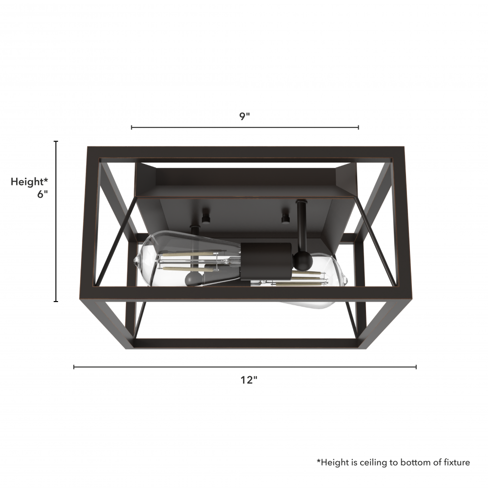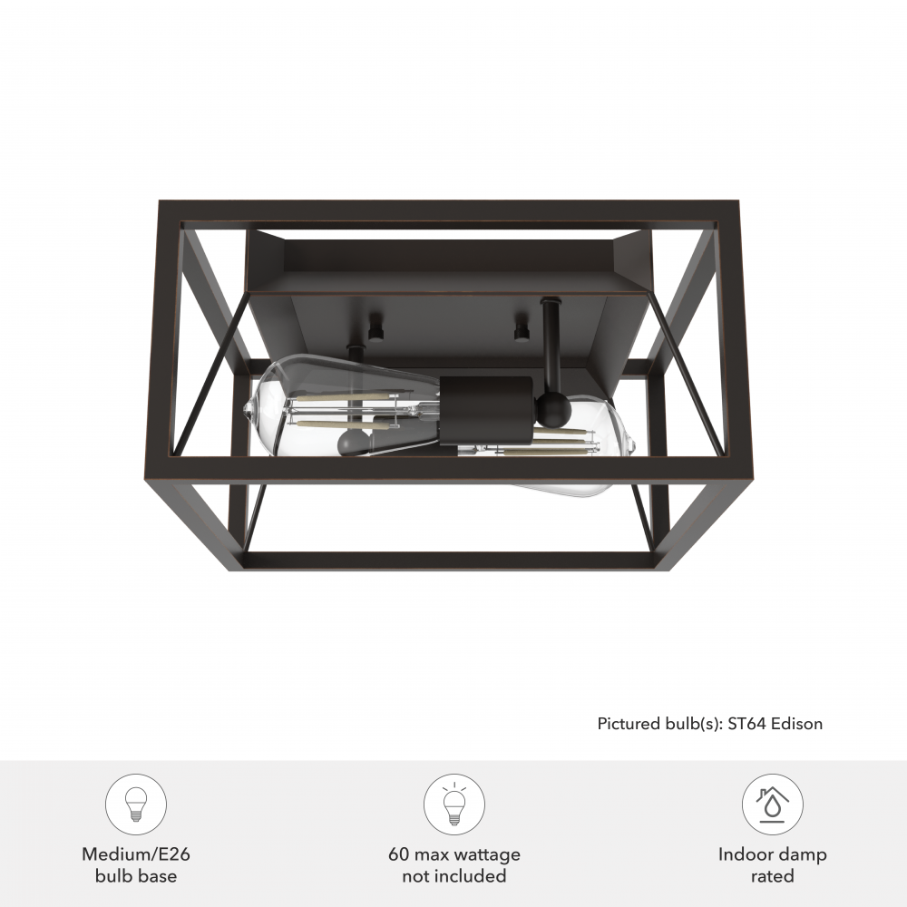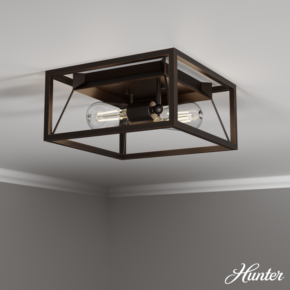 Hunter Doherty Natural Black Iron 2 Light Medium Flush Mount Ceiling Light Fixture