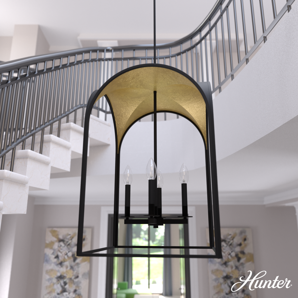 Hunter 19080 - Hunter Dukestown Natural Black Iron and Gold Leaf 4 Light Medium Pendant Ceiling Light Fixture
