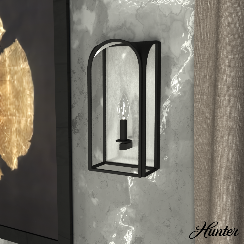Hunter Dukestown Natural Black Iron and Silver Leaf 1 Light Large Sconce Wall Light Fixture