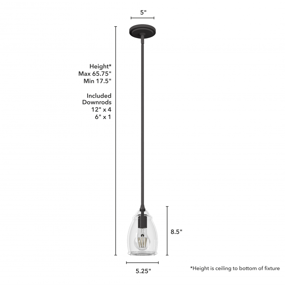 CUSTOMIZABLE HANGING OPTIONS: With the minimum required downrod, the hanging length is 17.5 inches. When using all of the included downrod, the maximum hanging length is 65.75 inches.