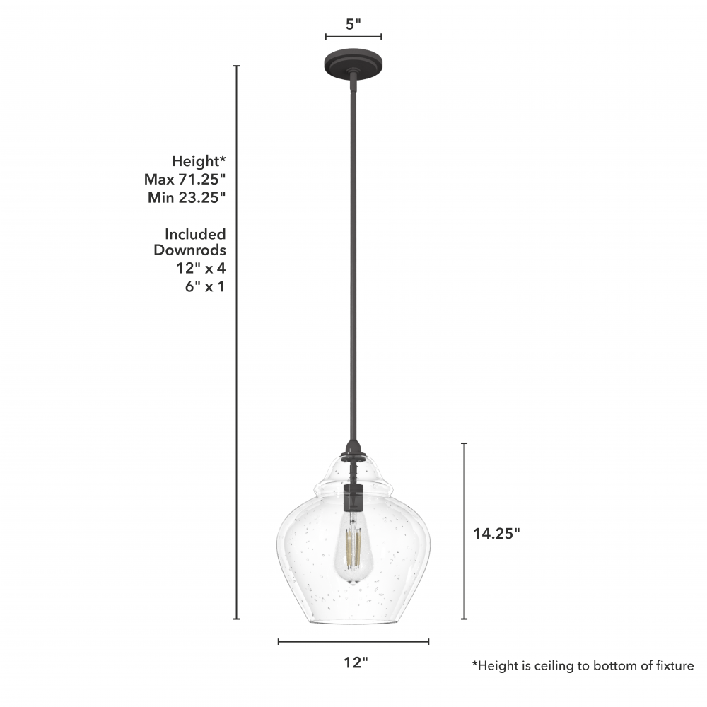 CUSTOMIZABLE HANGING OPTIONS: With the minimum required downrod, the hanging length is 23.25 inches. When using all of the included downrod, the maximum hanging length is 71.25 inches.