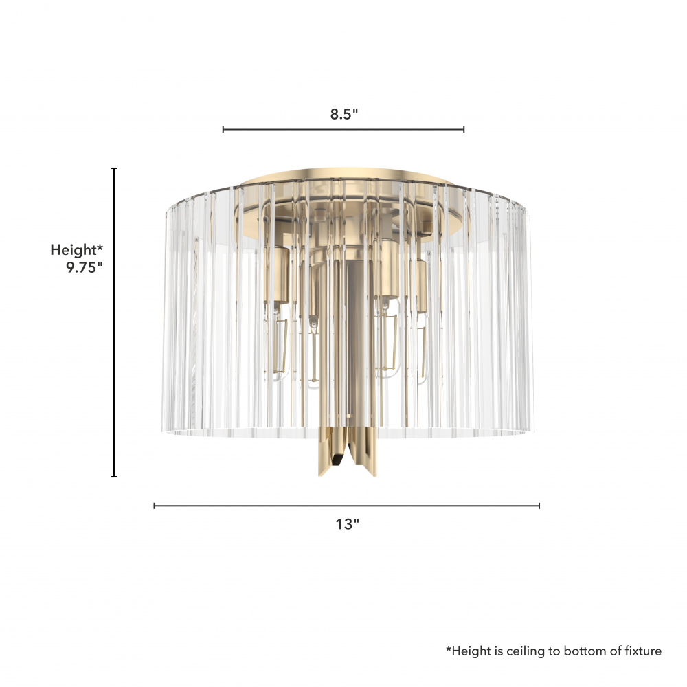 The addition of the Gatz flush mount turns the ordinary into the extraordinary. The sparkling light that shines through the fluted glass will fill your space with a glamorous style that harkens to a time of opulence. Add more lights from the collection to spread glamour throughout your home. Mix and match with fans from our ceiling fan collections to fully finish your space.