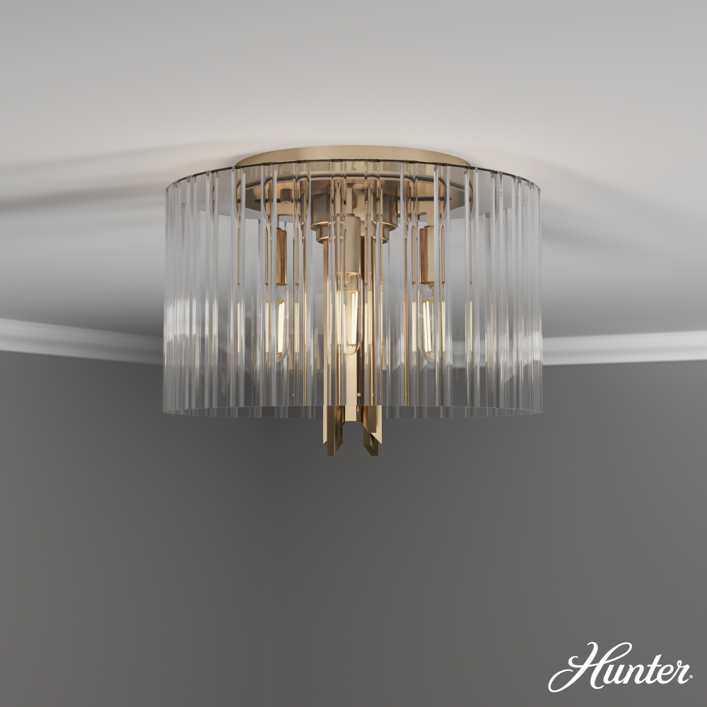 Hunter Gatz Alturas Gold with Clear Fluted Glass 4 Light Flush Mount Ceiling Light Fixture