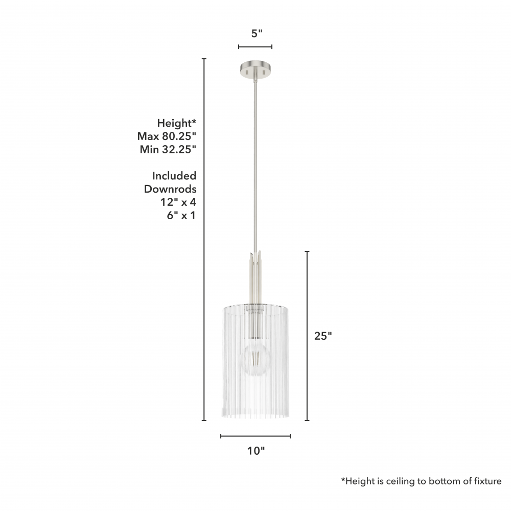 Hunter 19790 - Hunter Gatz Brushed Nickel with Clear Fluted Glass 1 Light Pendant Ceiling Light Fixture