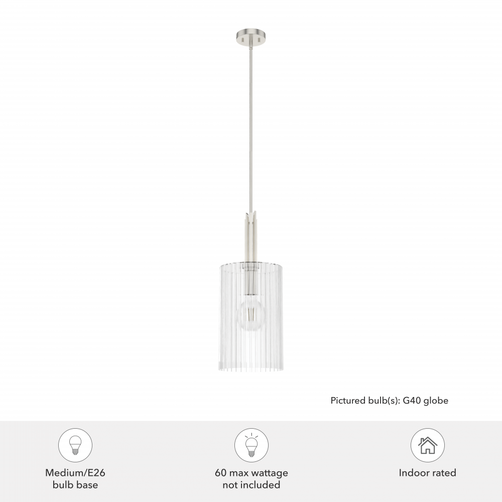 Hunter Gatz Brushed Nickel with Clear Fluted Glass 1 Light Pendant Ceiling Light Fixture