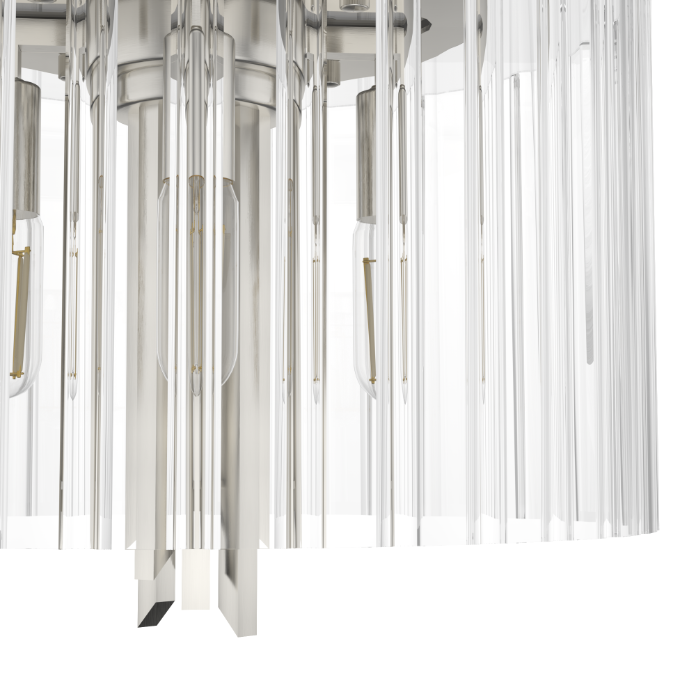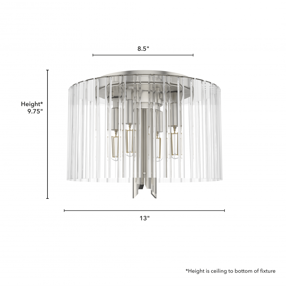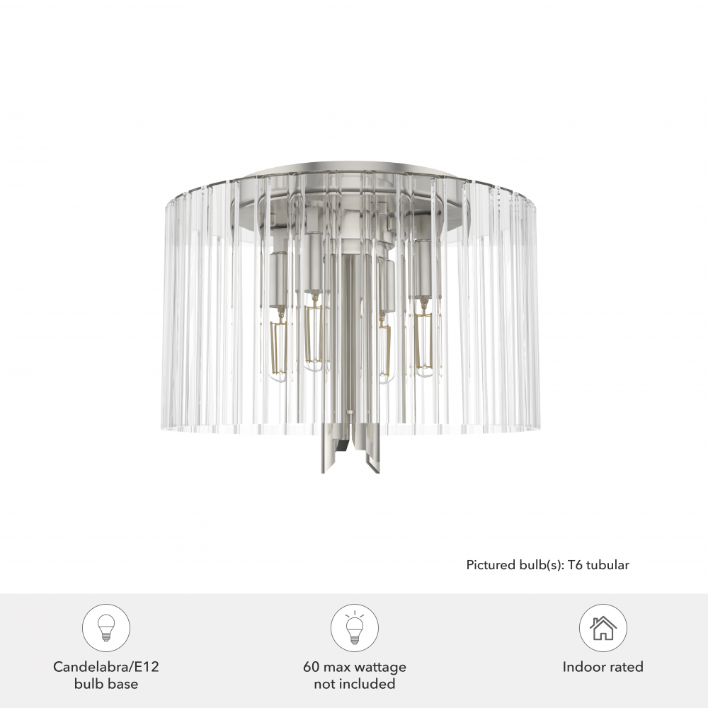 Hunter Gatz Brushed Nickel with Clear Fluted Glass 4 Light Flush Mount Ceiling Light Fixture