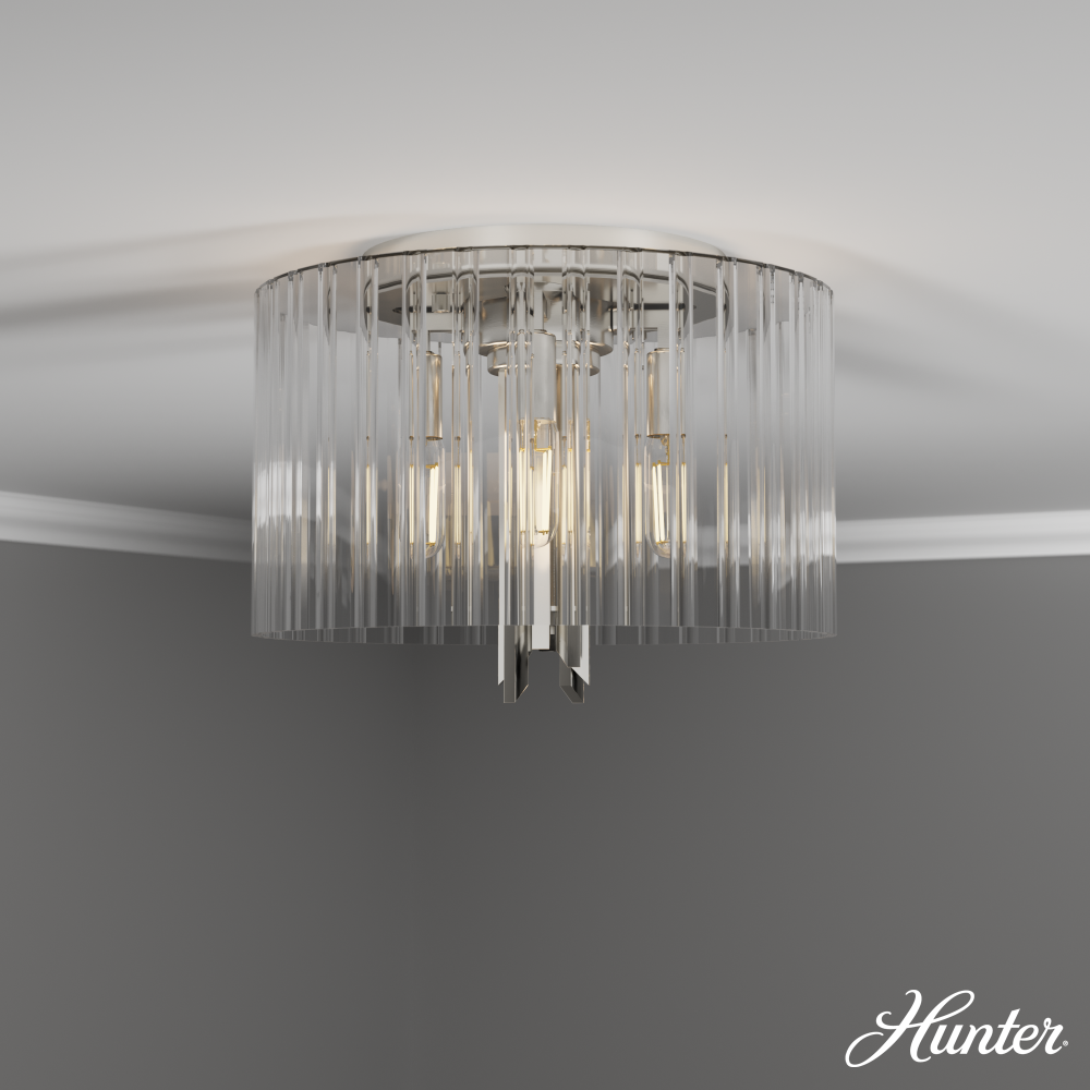 Hunter 19691 - Hunter Gatz Brushed Nickel with Clear Fluted Glass 4 Light Flush Mount Ceiling Light Fixture