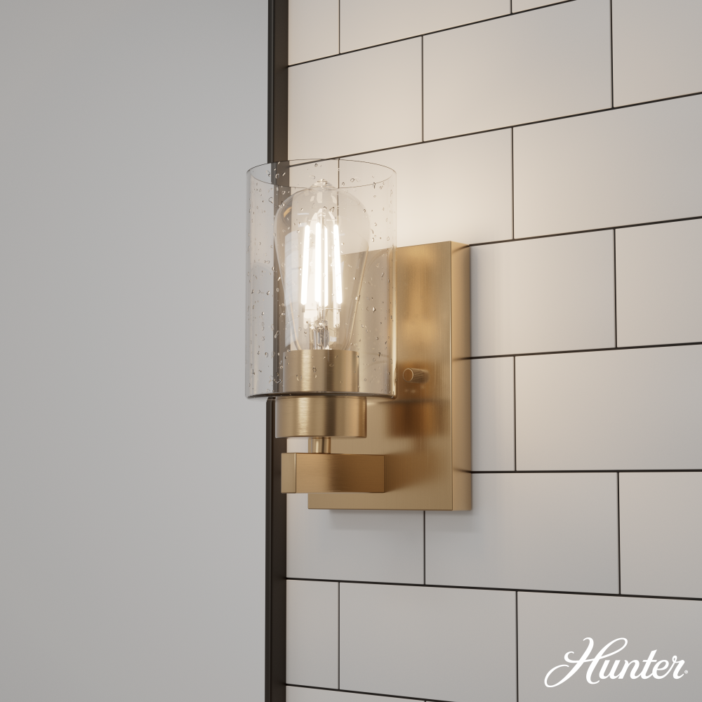 Hunter Hartland Alturas Gold with Seeded Glass 1 Light Sconce Wall Light Fixture