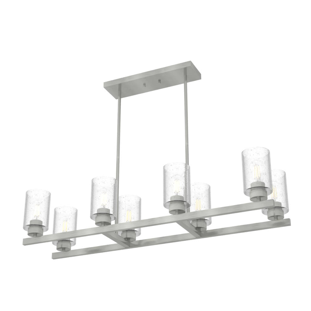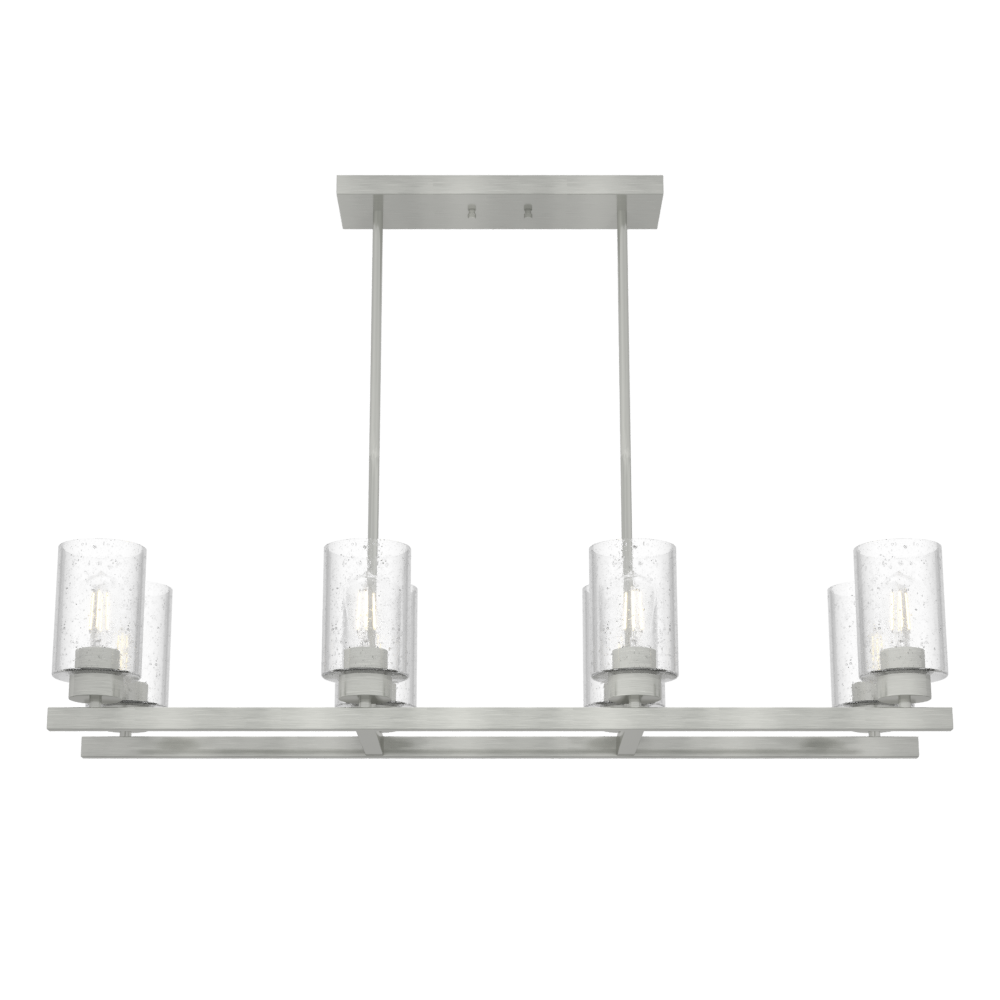 Simple form. Eye-catching detail. Designers gave the Hartland linear chandelier clean lines, which lends the focus to the stunning clear seeded glass. It creates a brilliant effect whether it’s from the sun streaming through or the warm glow of an Edison LED bulb. The perfect addition to our popular Hartland lighting collection.