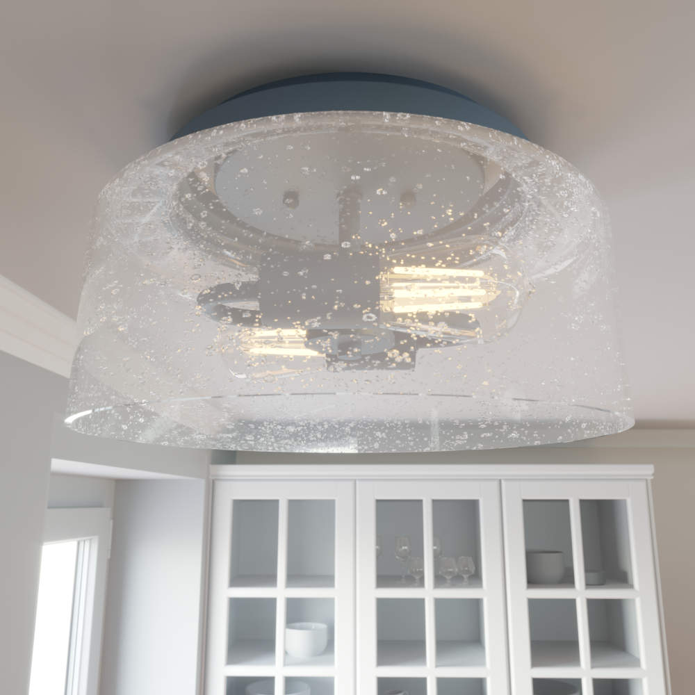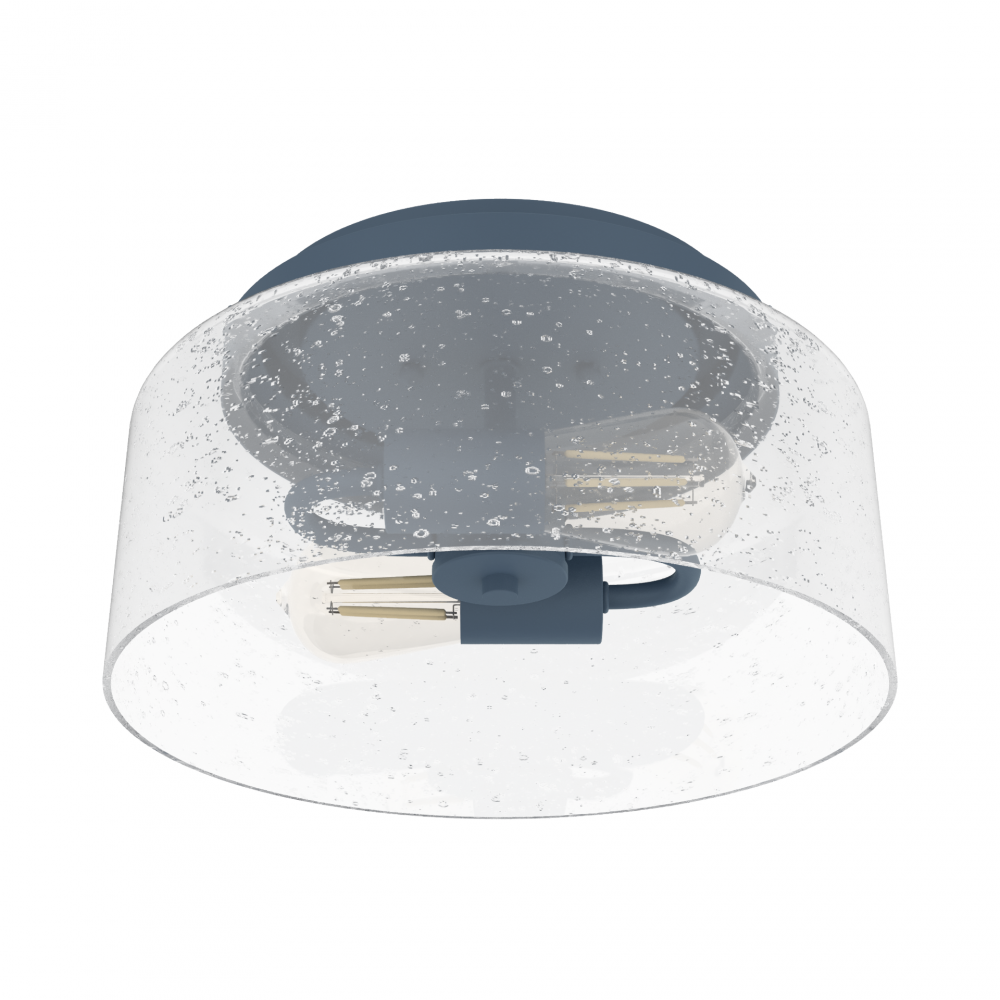 Hunter Hartland Indigo Blue with Seeded Glass 2 Light Flush Mount Ceiling Light Fixture