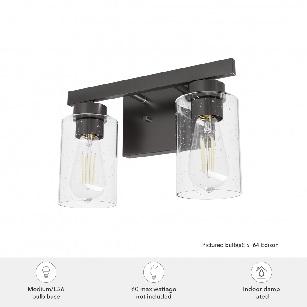 Hunter Hartland Noble Bronze with Seeded Glass 2 Light Bathroom Vanity Wall Light Fixture