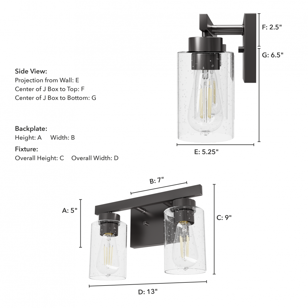 BULB RECOMMENDATION: Maximum W per light bulb or equivalent LED bulb. Bulbs not included.