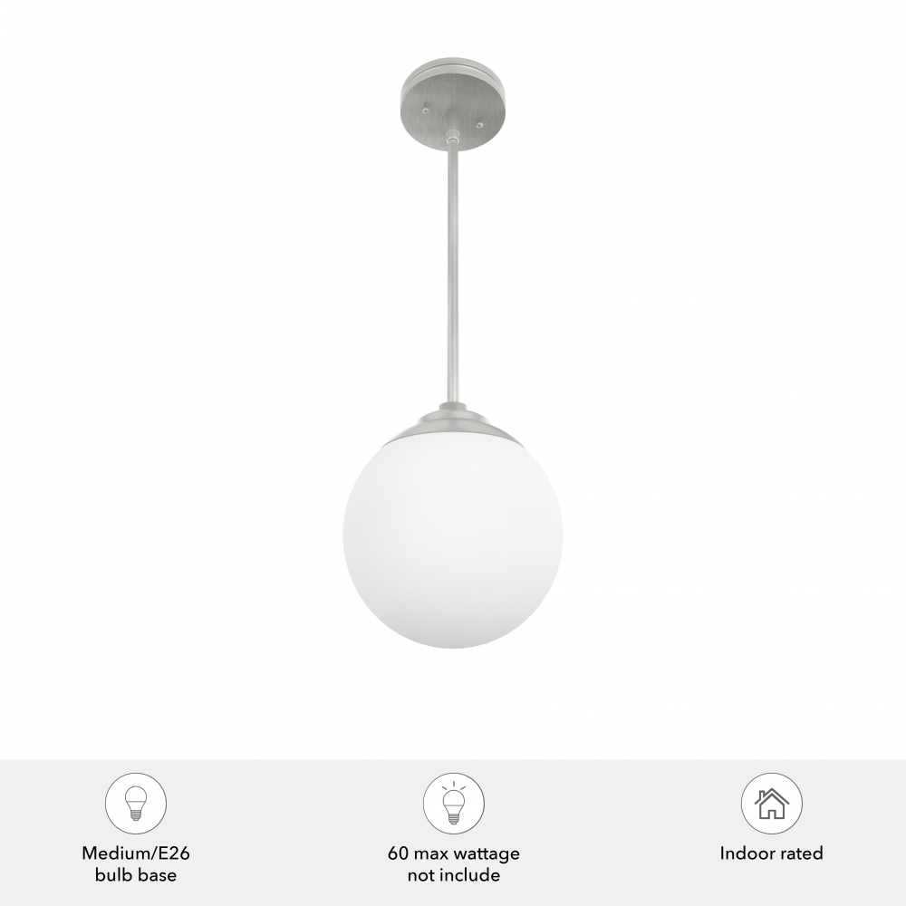 Hunter Hepburn Brushed Nickel with Cased White Glass 1 Light Pendant Ceiling Light Fixture