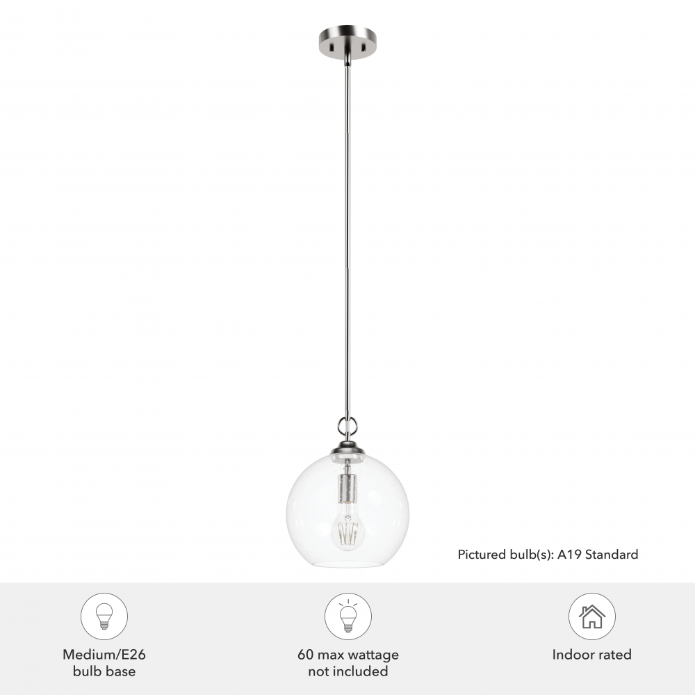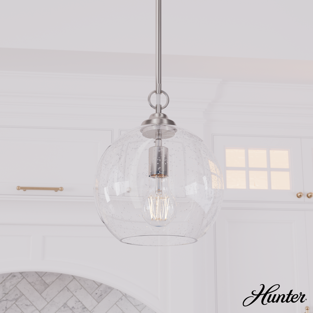 Hunter High Oaks Brushed Nickel with Clear Seeded Glass 1 Light Pendant Ceiling Light Fixture