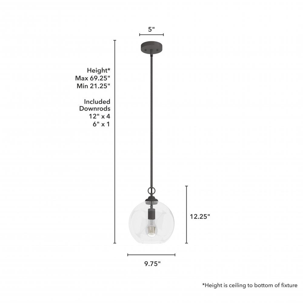 CUSTOMIZABLE HANGING OPTIONS: With the minimum required downrod, the hanging length is 21.25 inches. When using all of the included downrod, the maximum hanging length is 69.25 inches.