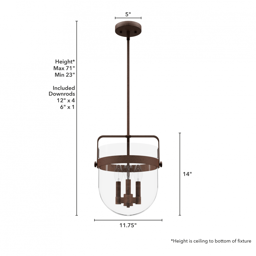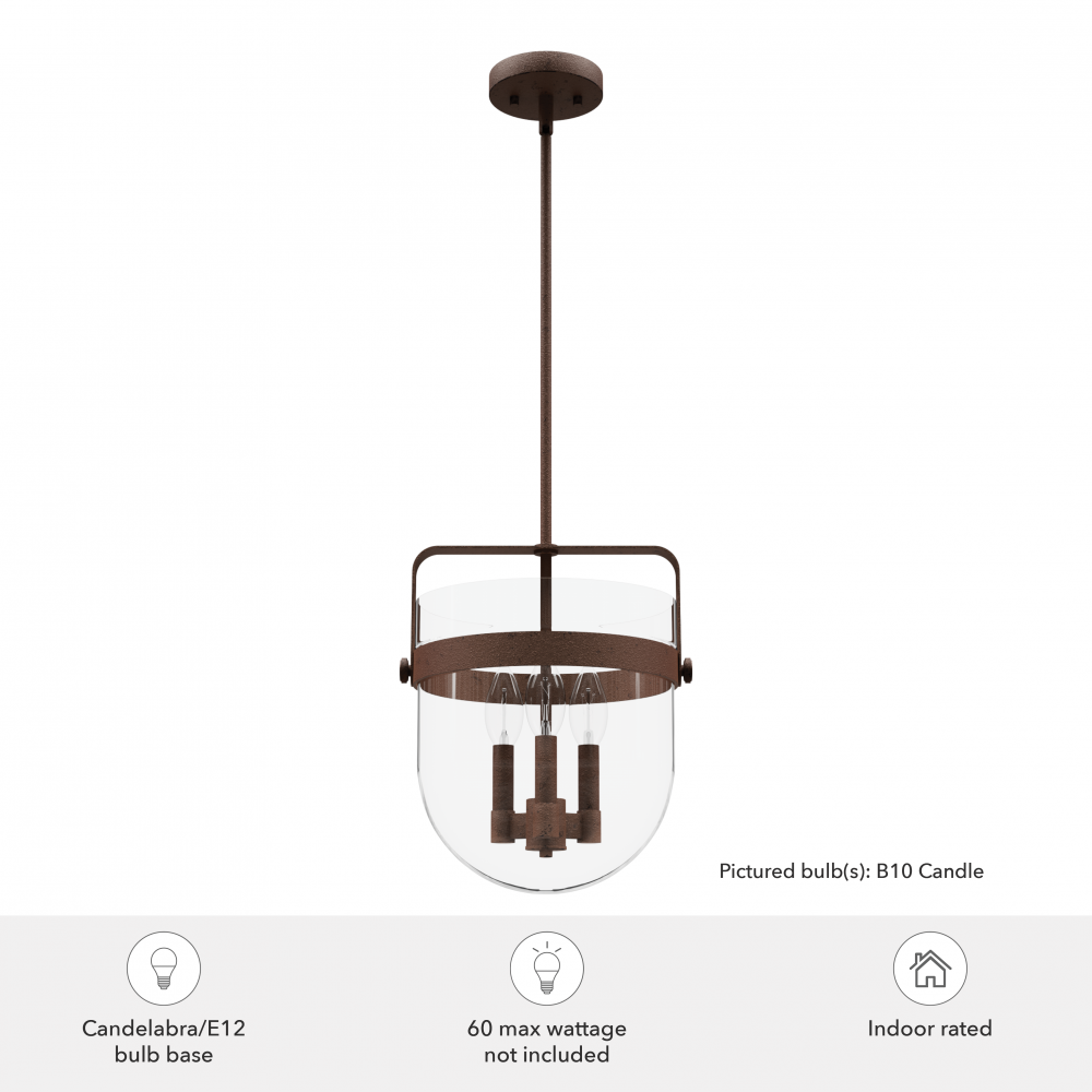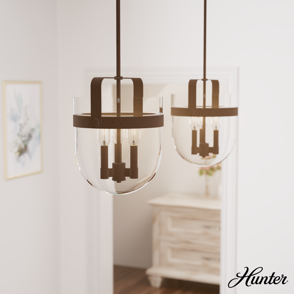 Hunter Karloff Textured Rust with Clear Glass 3 Light Pendant Ceiling Light Fixture