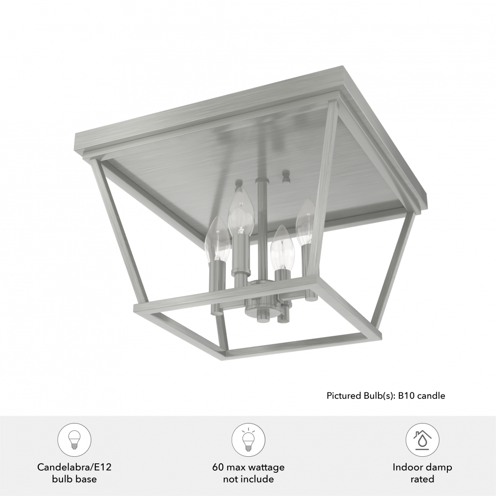 Hunter Laurel Ridge Brushed Nickel 4 Light Medium Flush Mount Ceiling Light Fixture