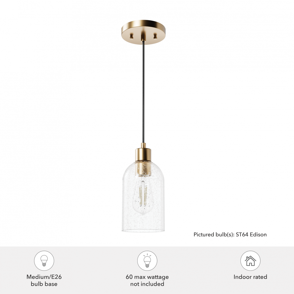 Hunter Lochemeade Alturas Gold with Clear Seeded Glass 1 Light Pendant Ceiling Light Fixture