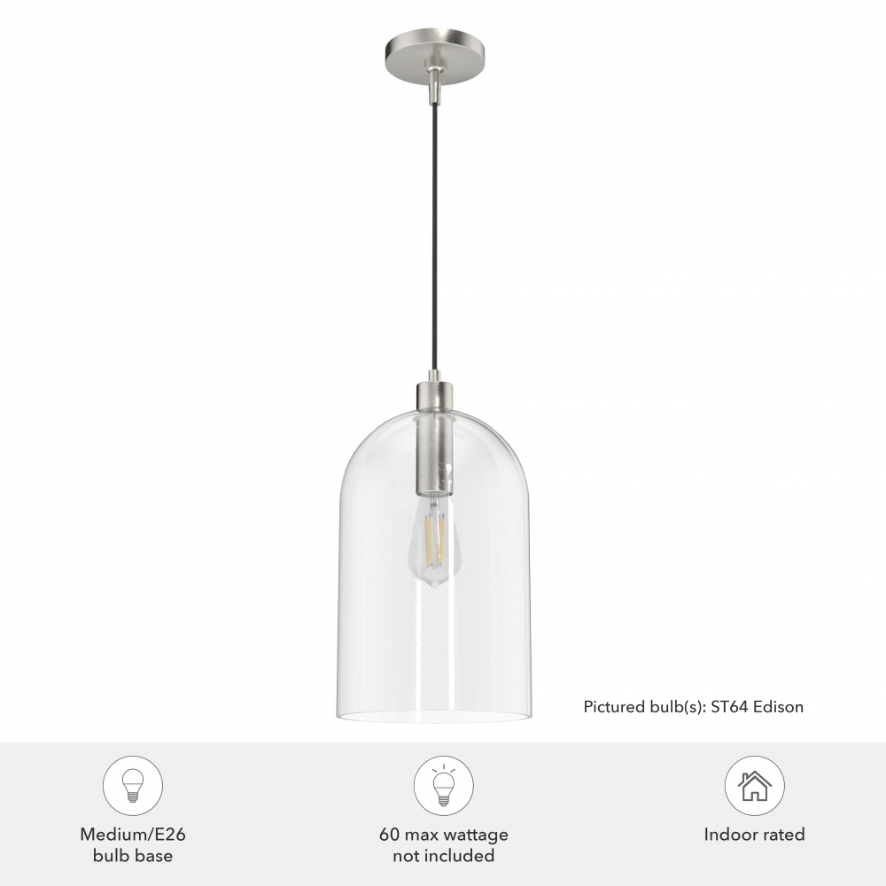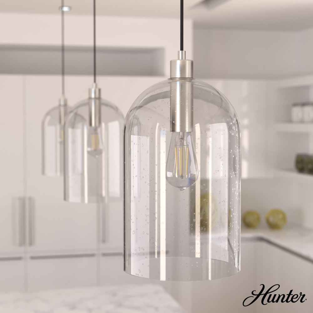 Hunter Lochemeade Brushed Nickel with Clear Seeded Glass 1 Light Pendant Ceiling Light Fixture
