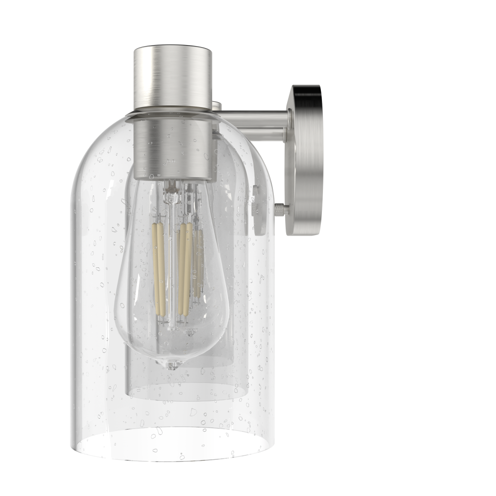 Hunter 19778 - Hunter Lochemeade Brushed Nickel with Seeded Glass 2 Light Bathroom Vanity Wall Light Fixture