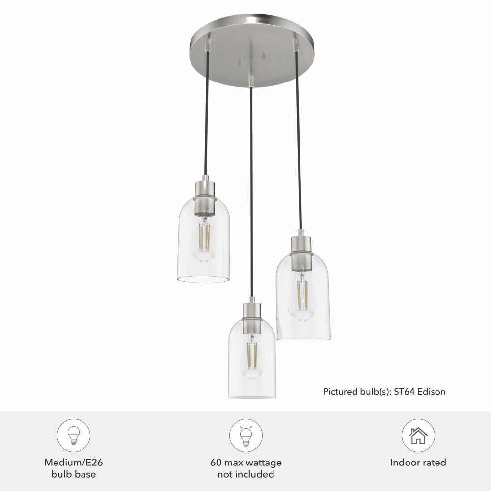 Hunter Lochemeade Brushed Nickel with Seeded Glass 3 Light Pendant Cluster Ceiling Light Fixture