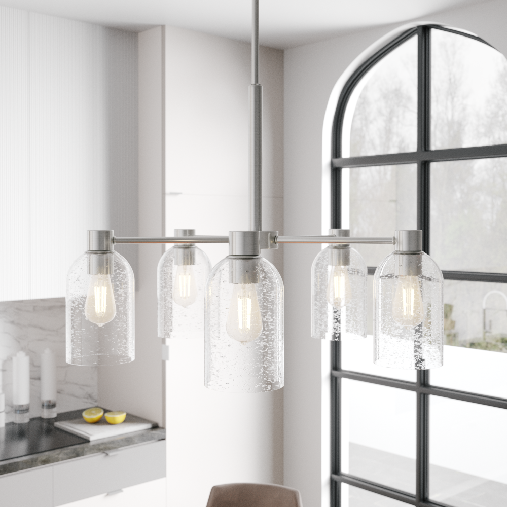 Simple yet magnificent, the Lochemeade 5-light chandelier features clear glass dome shades that leave an impression without being overpowering. Its minimalist design makes this modern chandelier versatile and able to enhance a variety of style spaces.