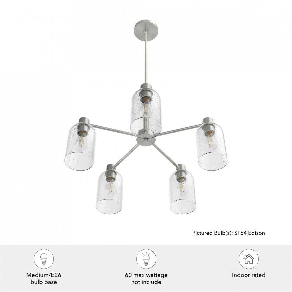 Hunter Lochemeade Brushed Nickel with Seeded Glass 5 Light Chandelier Ceiling Light Fixture
