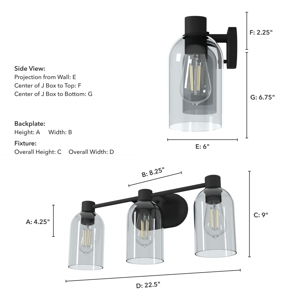 Sconce/Vanity Center of J Box to Bottom: