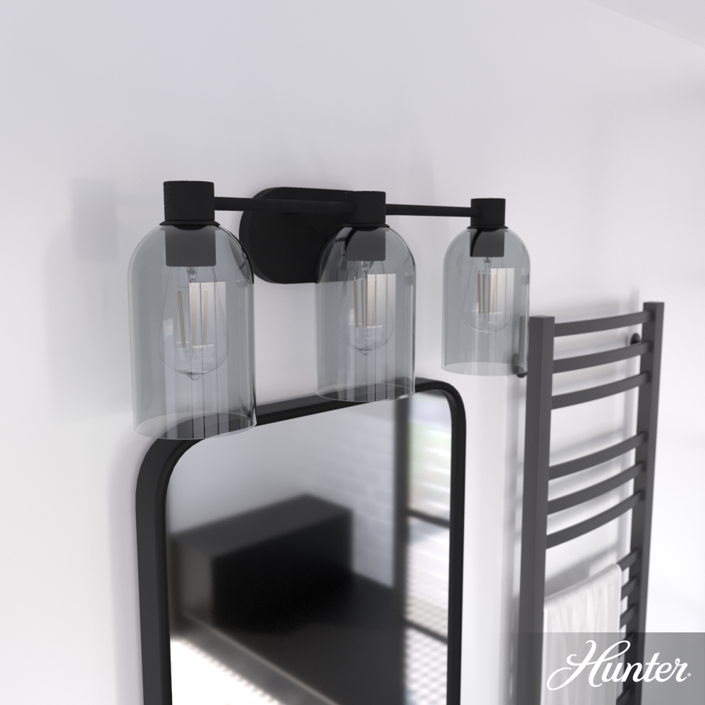 Hunter Lochemeade Natural Black Iron with Smoked Glass 3 Light Bathroom Vanity Wall Light Fixture