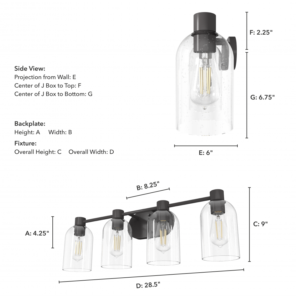 Sconce/Vanity Center of J Box to Bottom: