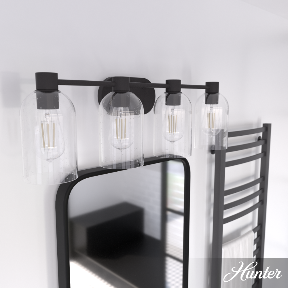 Hunter Lochemeade Noble Bronze with Seeded Glass 4 Light Bathroom Vanity Wall Light Fixture