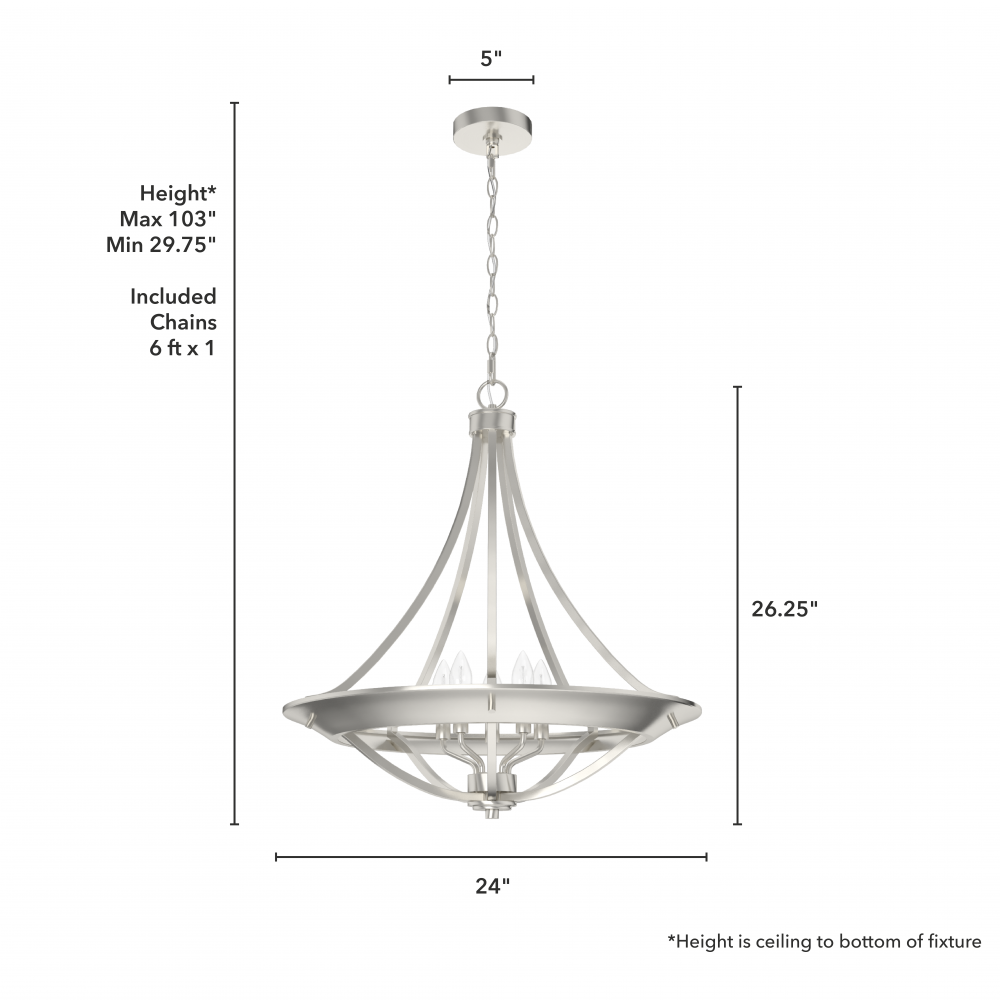 Hunter Perch Point Brushed Nickel 4 Light Large Pendant Ceiling Light Fixture