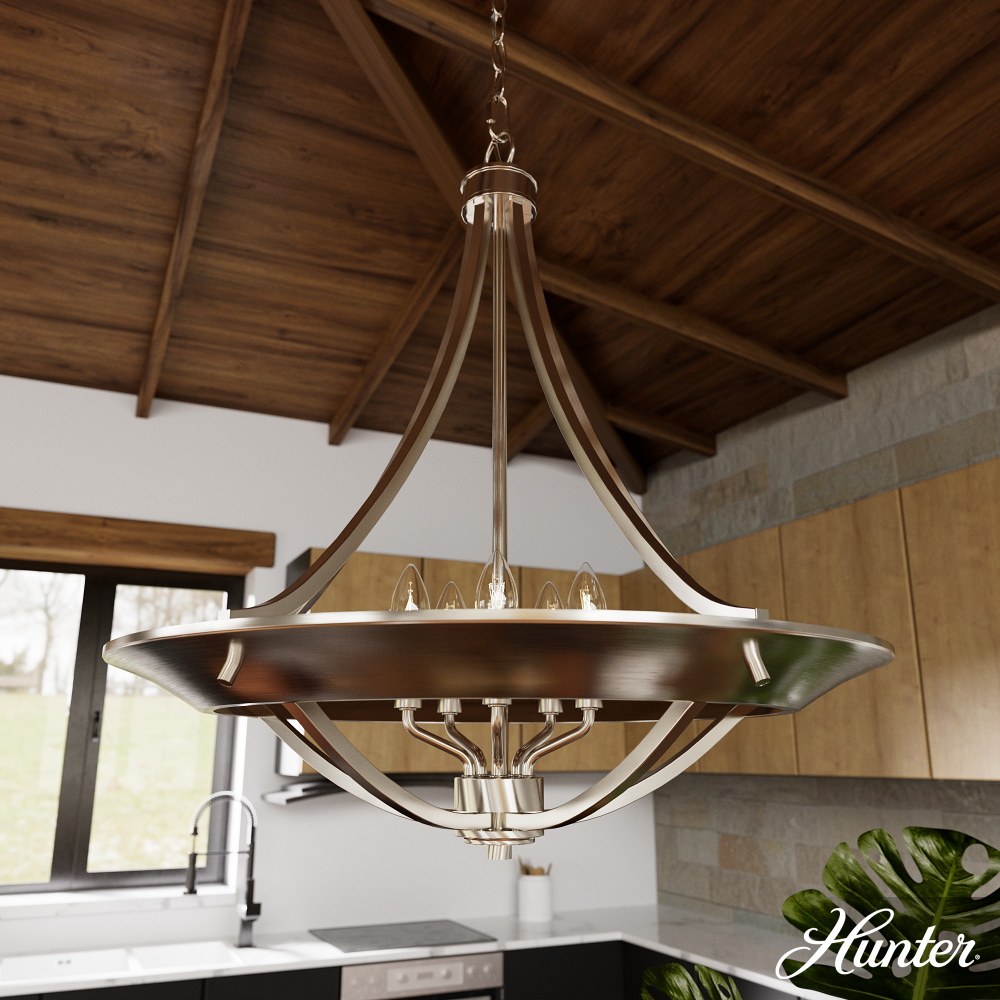Hunter 19429 - Hunter Perch Point Brushed Nickel 4 Light Large Pendant Ceiling Light Fixture