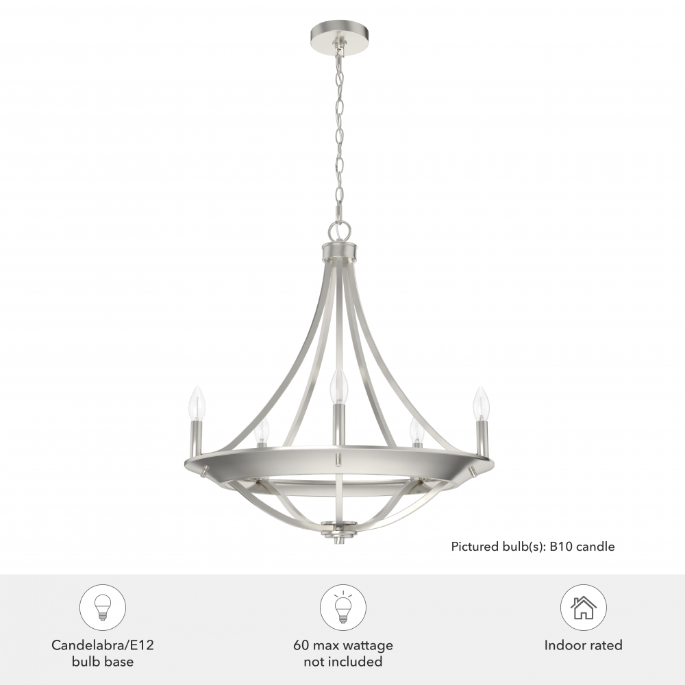 Hunter Perch Point Brushed Nickel 5 Light Small Chandelier Ceiling Light Fixture