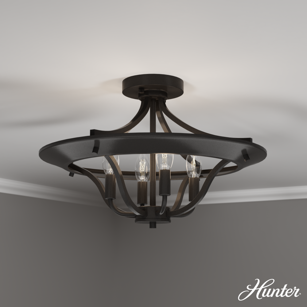 Hunter 19422 - Hunter Perch Point Noble Bronze 4 Light Medium Flush Mount Ceiling Light Fixture