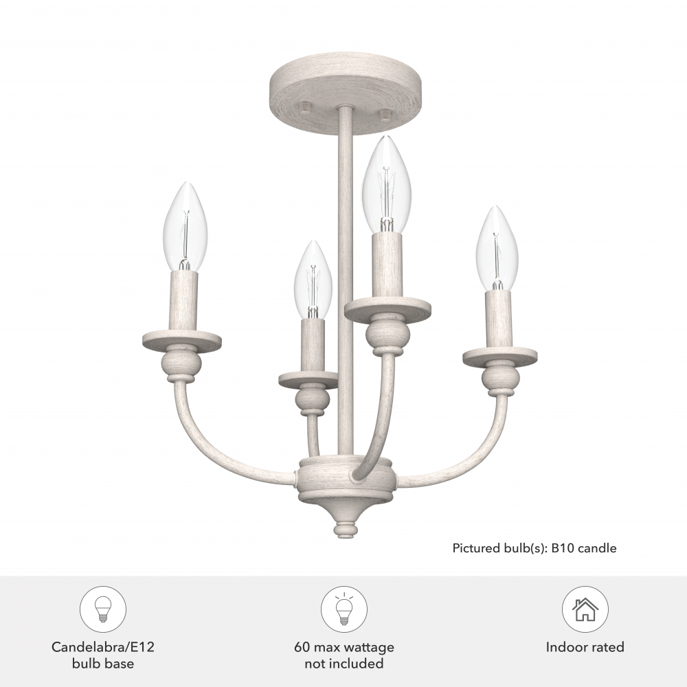 Hunter Southcrest Distressed White 4 Light Small Flush Mount Ceiling Light Fixture