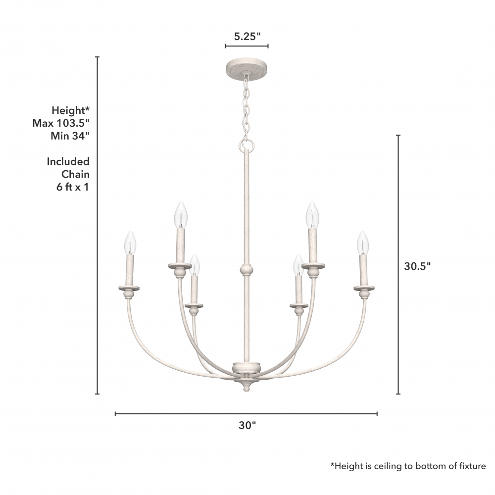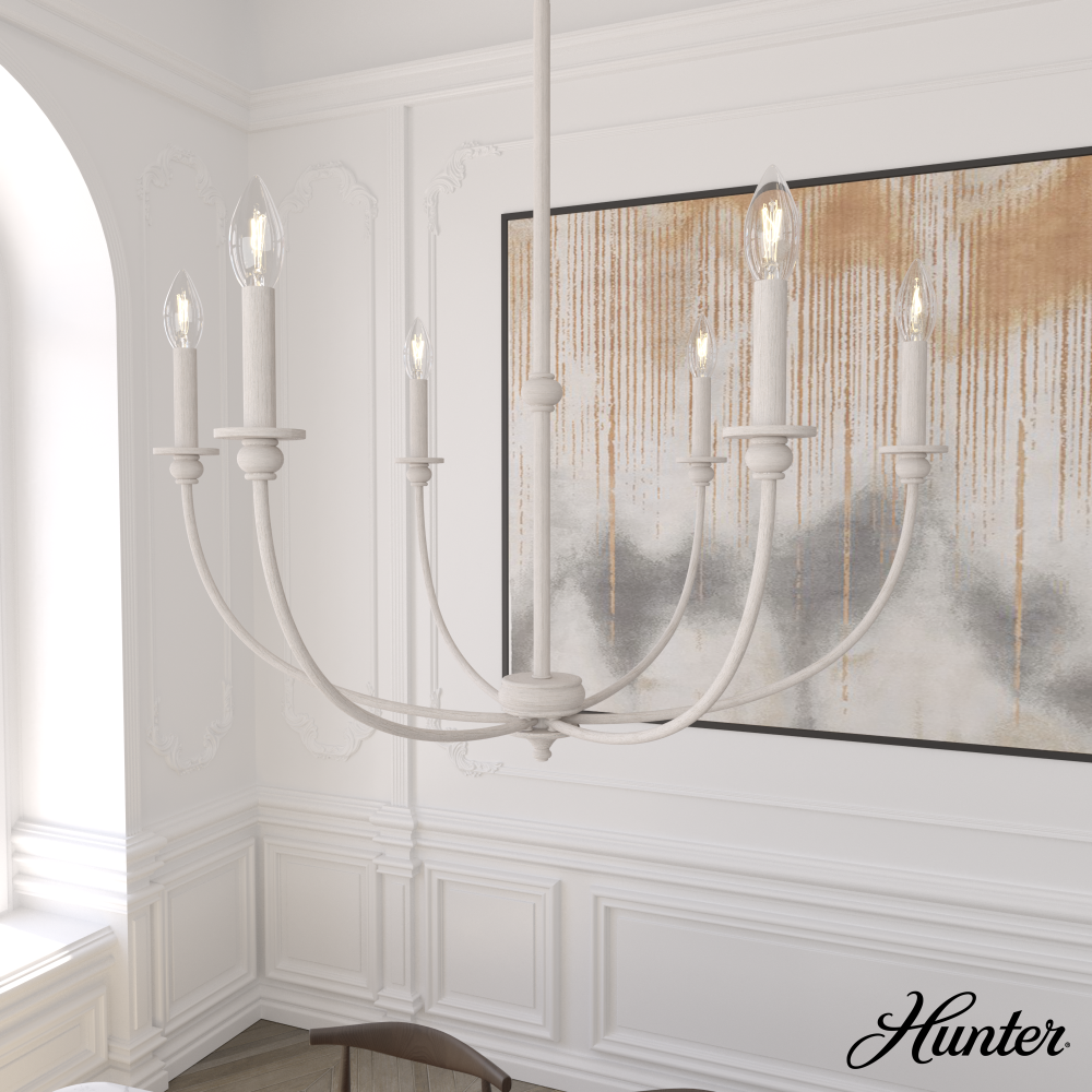 Hunter 19635 - Hunter Southcrest Distressed White 6 Light Large Chandelier Ceiling Light Fixture