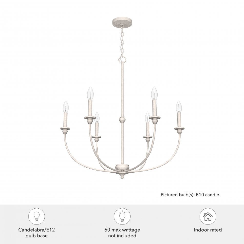 Hunter 19645 - Hunter Southcrest Distressed White 6 Light Large Chandelier Ceiling Light Fixture